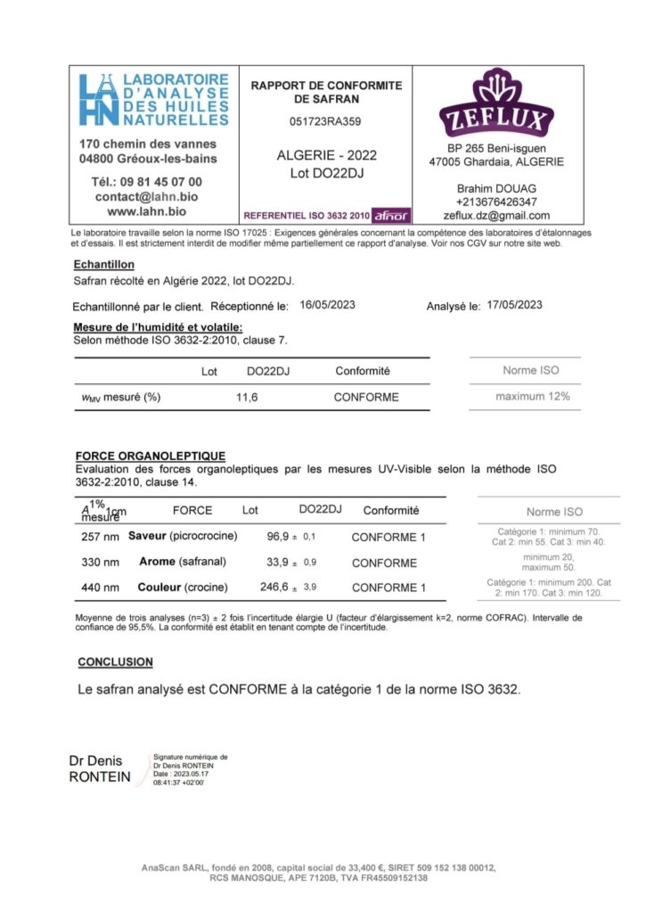 حرصا منا على تقديم الأفضل للمستهلك الجزائري قمنا بتحصيل شهادة ISO للجودة و السلامة من مختبر أوروبي، صحة المواطن أولى من بيع منتجات دات مخاطر قد تضر بالمستهلك عوض افادته.